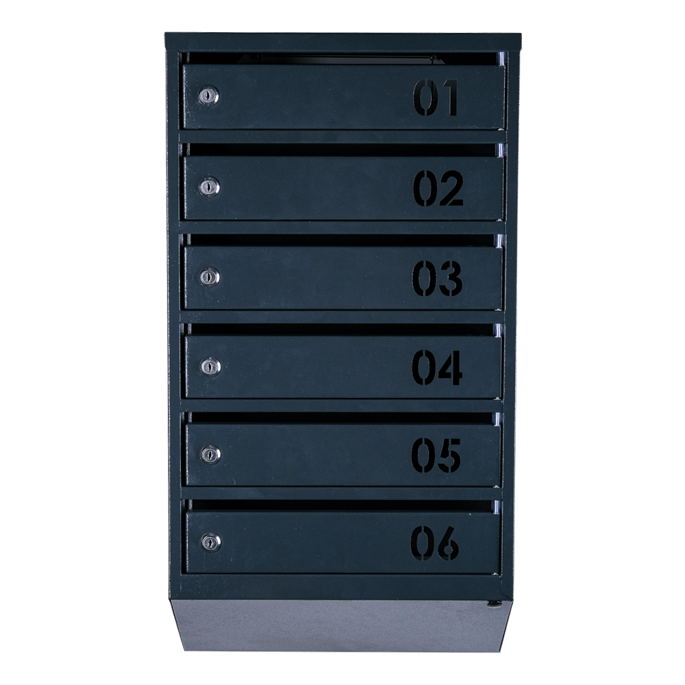 Цей поштовий ящик Галіндустрія ЯП06В на 6 секцій ідеально підходить для використання в багатоквартирних будинках. Його антрацитовий колір і стильний дизайн додають елегантності будівлі. Зручність і надійність забезпечується порошковим фарбуванням, яке забезпечує захист від корозії, а також замком з двома ключами, що гарантує безпеку пошти для кожного мешканця будинку.