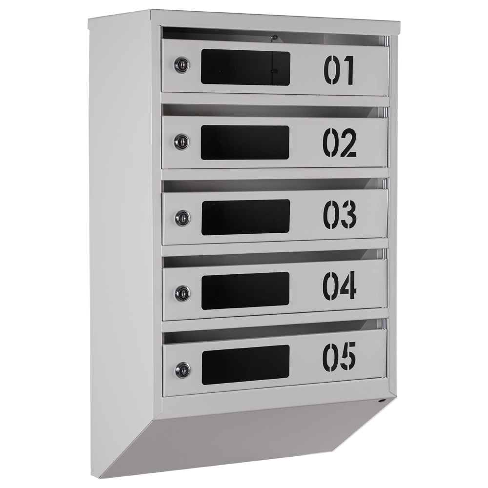 Кожна з п'яти секцій скриньки має достатньо простору для розміщення листів та поштових відправлень різних розмірів. Вбудований замок з двома ключами забезпечує безпеку ваших листів, а порошкове фарбування забезпечує стійкість до корозії і забруднень.