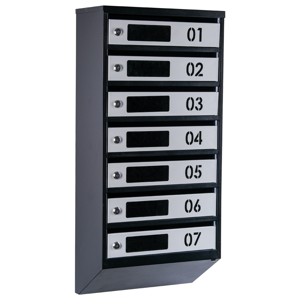 Чорне покриття корпусу (RAL 9005) і сірі дверцята (RAL 7035) створюють стильний та сучасний вигляд. Щілинна конструкція полегшує витягування та розміщення листів та кореспонденції.