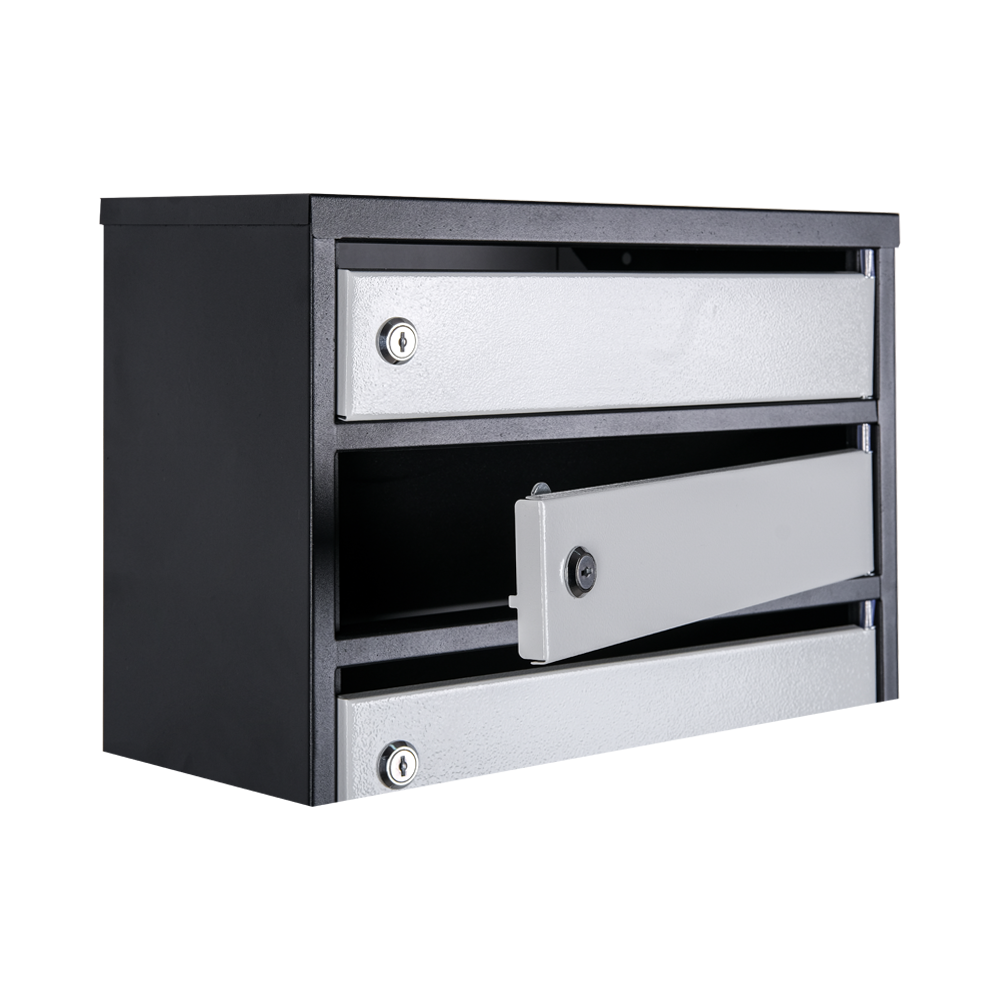 Ящик має міцну конструкцію з товщиною металу 0,5 мм для корпусу та 0,8 мм для дверцят, що гарантує тривалу службу. Порошкове фарбування забезпечує стійкість до атмосферних впливів. Замок з двома ключами гарантує безпеку та конфіденційність листів мешканців.