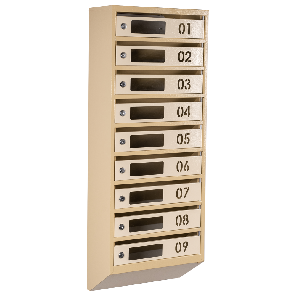 Кожна з дев'яти секцій має достатньо місця для прийому листів та поштових відправлень різних розмірів. Вбудований замок з двома ключами гарантує безпеку та конфіденційність листів мешканців будинку.