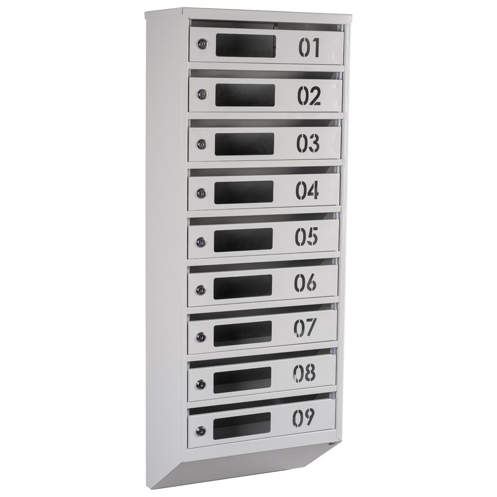 Кожна з дев'яти секцій має достатньо місця для прийому різноманітних поштових відправлень. Вбудований замок з двома ключами забезпечує безпеку пошти від несанкціонованого доступу. Завдяки своєму стильному дизайну і сучасному вигляду, цей поштовий ящик додасть елегантності будь-якому фасаду будинку і забезпечить зручність та безпеку в обробці пошти для всіх мешканців.