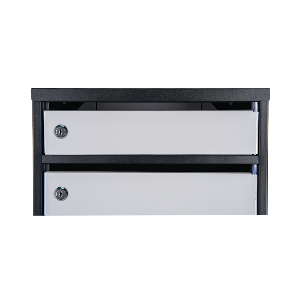 Ящик виготовлений із міцного металу товщиною корпусу 0,5 мм та дверцят 0,8 мм, що гарантує його довговічність та стійкість. Порошкове фарбування додає стійкості до зовнішніх факторів та забруднень. Замок з двома ключами забезпечує безпеку та конфіденційність кореспонденції для кожного мешканця будинку.