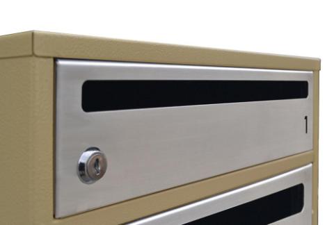 Поштова скринька LEVMETAL багатосекційна Е1-03.F на 3 секції Беж-сіра призначена для використання в багатоквартирних будинках. Має три косі секції зі щілинами для зручного отримання пошти. Дверцята обладнані вирізаним номером квартири та щілиною для зручності використання. Замок з двома ключами гарантує безпеку листів та документів. Корпус виготовлений зі сталі товщиною 0,7 мм, а дверцята з нержавіючої сталі, що забезпечує стійкість до зовнішніх впливів. Порошкове фарбування не лише додає естетичний вигляд, але і захищає від впливу навколишнього середовища. Виробник - Україна, що гарантує високу якість та відповідність стандартам.