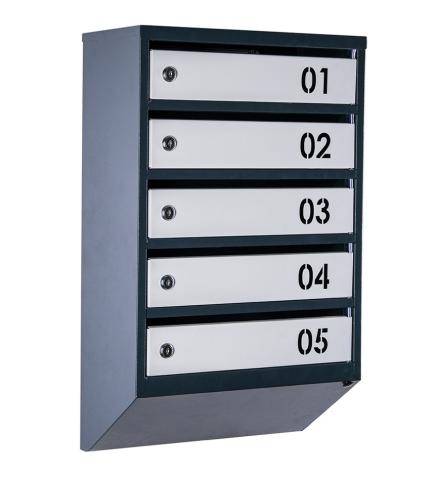 Поштова скринька LEVMETAL багатосекційна Е2-03.F в антрацитовому кольорі – це вдале поєднання стилю, міцності та функціональності. Завдяки косим секціям і відкритій щілині вона додає естетичний шар будь-якому багатоквартирному будинку. Вирізаний номер квартири та віконце дозволяють швидко та легко перевіряти надходження кореспонденції, забезпечуючи зручність та індивідуальність.