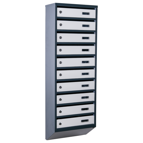 Прямі секції із щілинами та клапанами забезпечують легкий доступ для вставки та виймання пошти, гарантуючи організований процес розподілу. Дверцята обладнані віконцем для перевірки кореспонденції, що полегшує процес отримання листів.