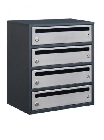 Ласкаво просимо до світу надійних та стильних поштових рішень від LEVMETAL. Модель E2-08.А призначена для 8 секцій (квартир) та представлена в сірому кольорі (RAL 7035).