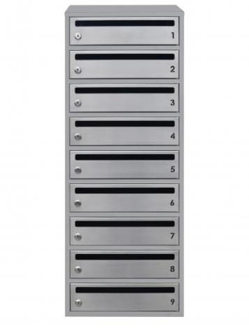 Поштовий ящик LEVMETAL багатосекціний Е2-09.F із 9 секціями у сірому кольорі (RAL 7035) - це стильний та функціональний вибір для багатоквартирних будинків.