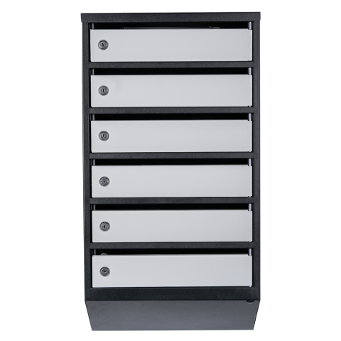 Галіндустрія ЯП06S - це поштовий ящик із 6 вертикальними прямокутниками, призначений для використання в багатоквартирних будинках. Кожна секція може обслуговувати окрему квартиру, забезпечуючи зручне та безпечне зберігання пошти для мешканців. Дверцята оснащені щілинами для вставки поштових відправлень та замками з двома ключами для забезпечення захисту від несанкціонованого доступу.