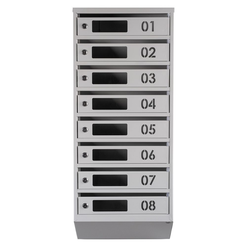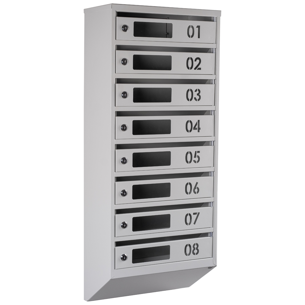 Кожна з восьми секцій забезпечує достатньо місця для прийому пошти різних розмірів. Вбудований замок з двома ключами гарантує захист вашої пошти від несанкціонованого доступу. Стильний дизайн і сучасний вигляд додасть елегантності вашому будинку і зробить процес отримання пошти зручним та безпечним.