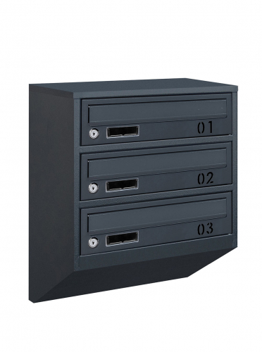 Поштовий ящик LEVMETAL багатосекціний Е1-03.B на 3 квартири Антрацит 475x390x200