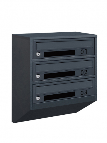 Поштовий ящик LEVMETAL багатосекціний Е1-03.D на 3 квартири Антрацит 475x390x200