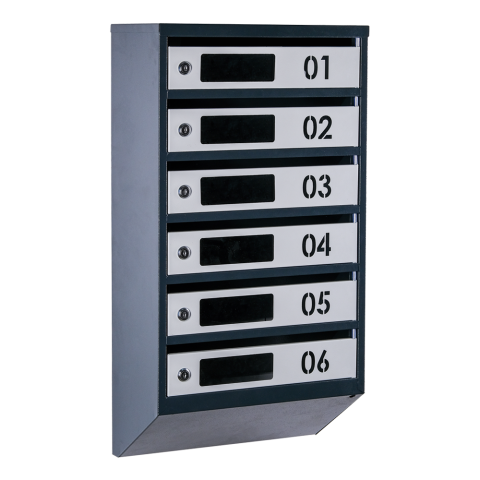Поштовий ящик LEVMETAL багатосекціний Е1-06.A на 6 секцій в сірих відтінках є ідеальним виробом для ефективного та зручного отримання пошти в багатоквартирних будинках. З декоративною перфорацією та віконцем дверцят відзначається стильним та функціональним дизайном.