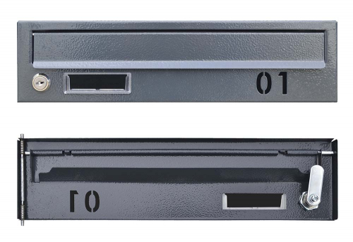 Косі секції з щілинами та клапанами дозволяють легко отримувати листи та іншу кореспонденцію. Вирізаний номер квартири та віконце на дверцятах роблять ящик практичним та функціональним.