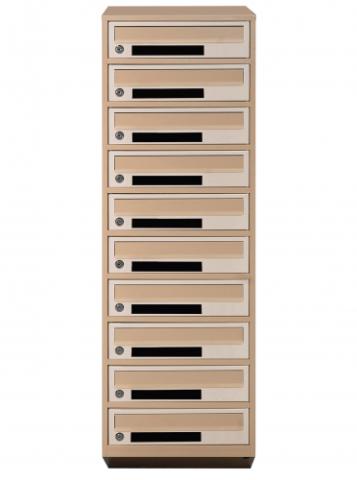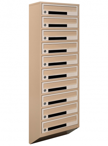 Поштовий ящик LEVMETAL багатосекціний Е1-10.C у бежевому кольорі призначений для використання в багатоквартирних будинках. Косі секції з щілинами та клапанами дозволяють легко отримувати та відправляти кореспонденцію.