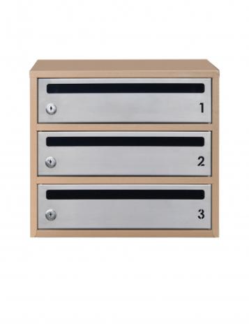 Поштовий ящик LEVMETAL багатосекціний Е2-03.F на 3 квартири Беж-сіра 345x390x250