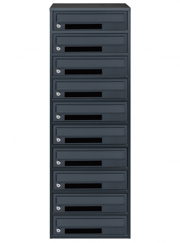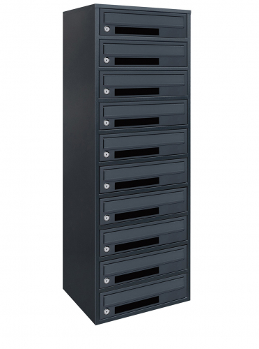 Поштовий ящик LEVMETAL багатосекціний Е2-10.C антрацитного кольору призначений для використання в багатоквартирних будинках. Прямі секції з щілинами та клапанами забезпечують зручний доступ до пошти.