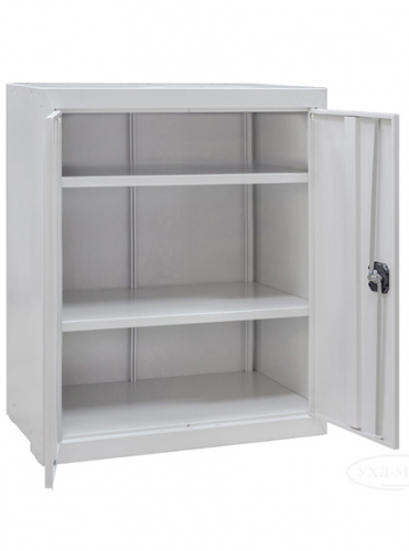 Безпека - це ще один важливий аспект конструкції. Механізм закривання дверей обладнаний ригельною системою та механічним замком, який комплектується двома ключами для забезпечення максимальної захищеності вашого майна. Висота шафи становить 900 мм, і вона оснащена двома регульованими полицями, щоб максимально оптимізувати використання простору всередині. Кожна полиця здатна витримати навантаження до 40 кг, забезпечуючи надійність та стійкість під час зберігання різних предметів.