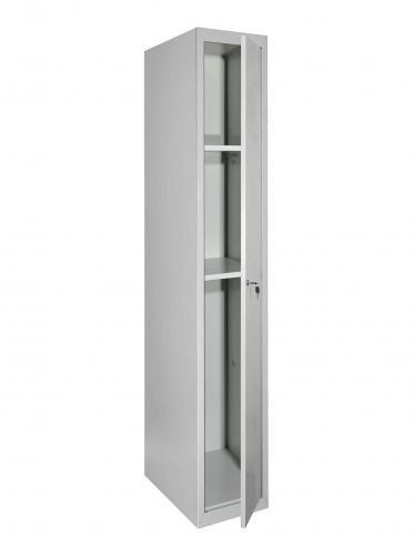 Матеріал: Метал, Покриття: Полімерно-порошкове, Конструкція: Збірно-розбірна, Товщина металу 0.5 мм, Тип шафи: Господарський (ШГМ), Кількість секцій: 1, Кількість дверей у секції: 1, Кількість відділень: 3 з можливістю регулювання висоти полиць