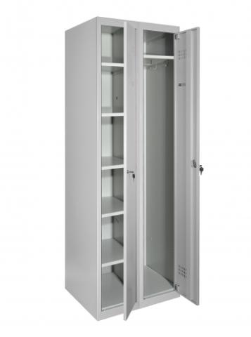 Матеріал: Метал, Покриття: Полімерно-порошкове, Конструкція: Збірно-розбірна, Товщина металу 0.5 мм, Тип шафи: Господарський (ШГМ), Кількість секцій: 1, Кількість дверей у секції: 1, Кількість відділень: 4 з можливістю регулювання висоти полиць