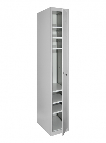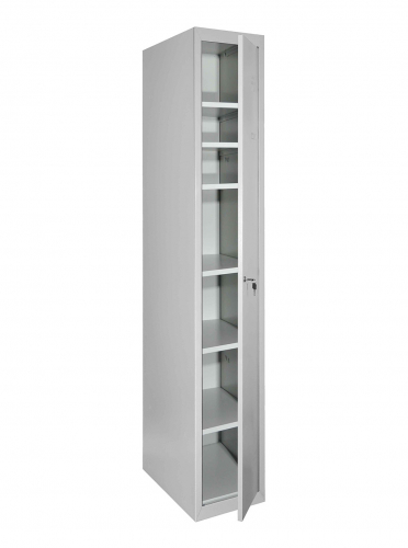 Матеріал: Метал, Покриття: Полімерно-порошкове, Конструкція: Збірно-розбірна, Товщина металу 0.5 мм, Тип шафи: Господарський (ШГМ), Кількість секцій: 1, Кількість дверей у секції: 1, Кількість відділень: 7 з можливістю регулювання висоти полиць