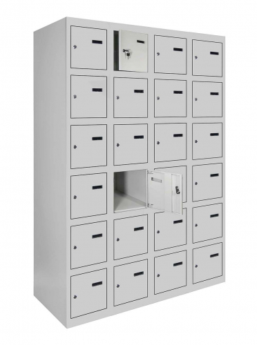 Універсальність конструкції дозволяє зручно складувати шафи в будь-якому приміщенні, а можливість їхнього з'єднання у вигляді блоків робить їх ідеальним варіантом для організації простору будь-якого розміру. Кожна секція шафи оснащена врізним механічним замком з двома ключами для забезпечення надійності та конфіденційності зберігання.