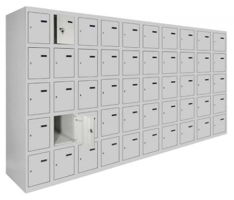 Універсальність конструкції дозволяє зручно складувати шафи в будь-якому приміщенні, а можливість їхнього з'єднання у вигляді блоків робить їх ідеальним варіантом для організації простору будь-якого розміру. Кожна секція шафи оснащена врізним механічним замком з двома ключами для забезпечення надійності та конфіденційності зберігання.