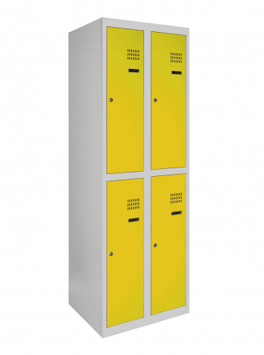 Кожна секція шафи обладнана 4 гачками для легкого підвішування одягу, перекладеною для вішаків, а також поличкою для зручного розміщення речей. Крім того, кожна секція оснащена врізним механічним замком типу прапорця з двома ключами для забезпечення максимальної безпеки зберігання. Таким чином, шафи одягові металеві є надійним та функціональним рішенням для організації зберігання одягу у будь-якому приміщенні.