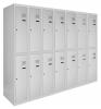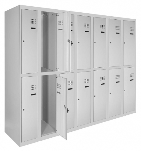 Кожна секція шафи обладнана 4 гачками для легкого підвішування одягу, перекладеною для вішаків, а також поличкою для зручного розміщення речей. Крім того, кожна секція оснащена врізним механічним замком типу прапорця з двома ключами для забезпечення максимальної безпеки зберігання. Таким чином, шафи одягові металеві є надійним та функціональним рішенням для організації зберігання одягу у будь-якому приміщенні.