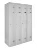 Кожна секція шафи обладнана 4 гачками для легкого підвішування одягу, перекладеною для вішаків, а також поличкою для зручного розміщення речей. Крім того, кожна секція оснащена врізним механічним замком типу прапорця з двома ключами для забезпечення максимальної безпеки зберігання. Таким чином, шафи одягові металеві є надійним та функціональним рішенням для організації зберігання одягу у будь-якому приміщенні.
