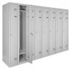 Кожна секція шафи обладнана 4 гачками для легкого підвішування одягу, перекладеною для вішаків, а також поличкою для зручного розміщення речей. Крім того, кожна секція оснащена врізним механічним замком типу прапорця з двома ключами для забезпечення максимальної безпеки зберігання. Таким чином, шафи одягові металеві є надійним та функціональним рішенням для організації зберігання одягу у будь-якому приміщенні.