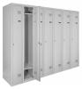 Кожна секція шафи обладнана 4 гачками для легкого підвішування одягу, перекладеною для вішаків, а також поличкою для зручного розміщення речей. Крім того, кожна секція оснащена врізним механічним замком типу прапорця з двома ключами для забезпечення максимальної безпеки зберігання. Таким чином, шафи одягові металеві є надійним та функціональним рішенням для організації зберігання одягу у будь-якому приміщенні.