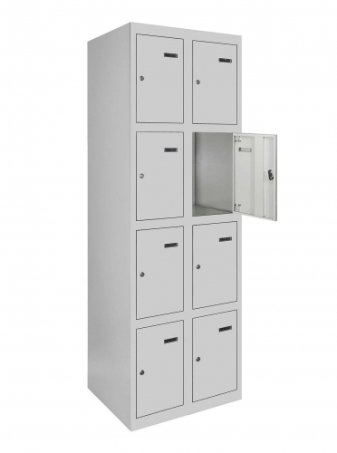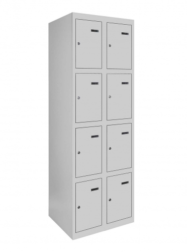 Універсальність конструкції дозволяє зручно складувати шафи в будь-якому приміщенні, а можливість їхнього з'єднання у вигляді блоків робить їх ідеальним варіантом для організації простору будь-якого розміру. Кожна секція шафи оснащена врізним механічним замком з двома ключами для забезпечення надійності та конфіденційності зберігання.