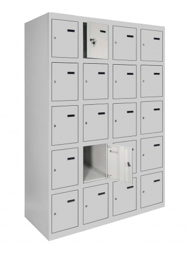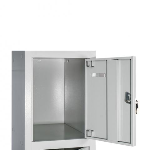 Універсальність конструкції дозволяє зручно складувати шафи в будь-якому приміщенні, а можливість їхнього з'єднання у вигляді блоків робить їх ідеальним варіантом для організації простору будь-якого розміру. Кожна секція шафи оснащена врізним механічним замком з двома ключами для забезпечення надійності та конфіденційності зберігання.