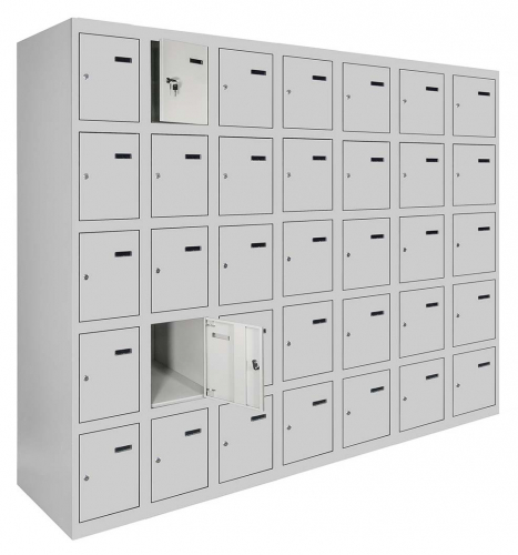 Універсальність конструкції дозволяє зручно складувати шафи в будь-якому приміщенні, а можливість їхнього з'єднання у вигляді блоків робить їх ідеальним варіантом для організації простору будь-якого розміру. Кожна секція шафи оснащена врізним механічним замком з двома ключами для забезпечення надійності та конфіденційності зберігання.