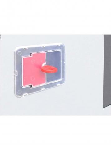 - Оглядове вікно на дверцятах шафи виготовлене з небьющогося пластику, що дозволяє здійснювати візуальний контроль інвентарю всередині шафи без необхідності відкривати її.