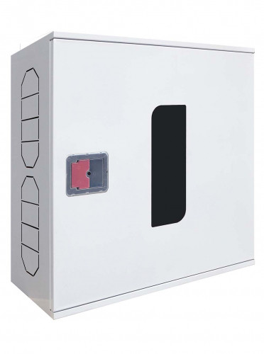 Додаткові характеристики: Дверцята шафи, за замовчуванням, згідно норм, мають оглядове вікно з пластику, що не б'ється, для візуального контролю інвентарю і має максимальний кут відкривання (не менше 170 град), обладнані ергономічною ручкою - замком, що забезпечує надійне замикання дверей, а також їх легке відкриття. На бокових стінках корпусу виконані перфоровані отвори для приєднання обладнання пожежного крана до внутрішнього водопроводу будівлі та отвори кріплення пожежної касети для рукава. Шафи кріпляться в ніші або на стіні...