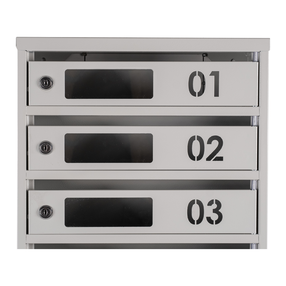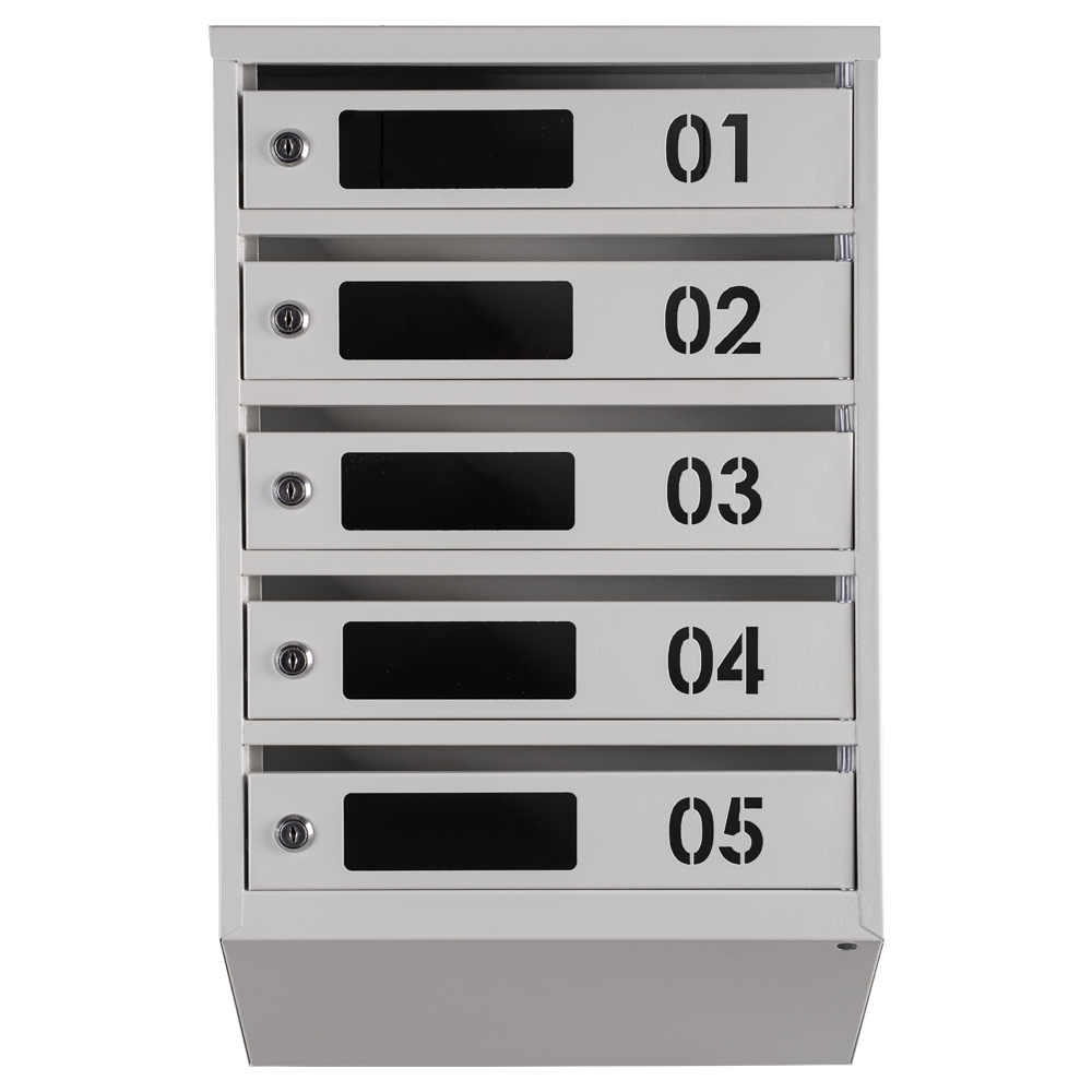 Кожна з п'яти секцій скриньки має достатньо простору для розміщення листів та поштових відправлень різних розмірів. Вбудований замок з двома ключами забезпечує безпеку ваших листів, а порошкове фарбування забезпечує стійкість до корозії і забруднень.