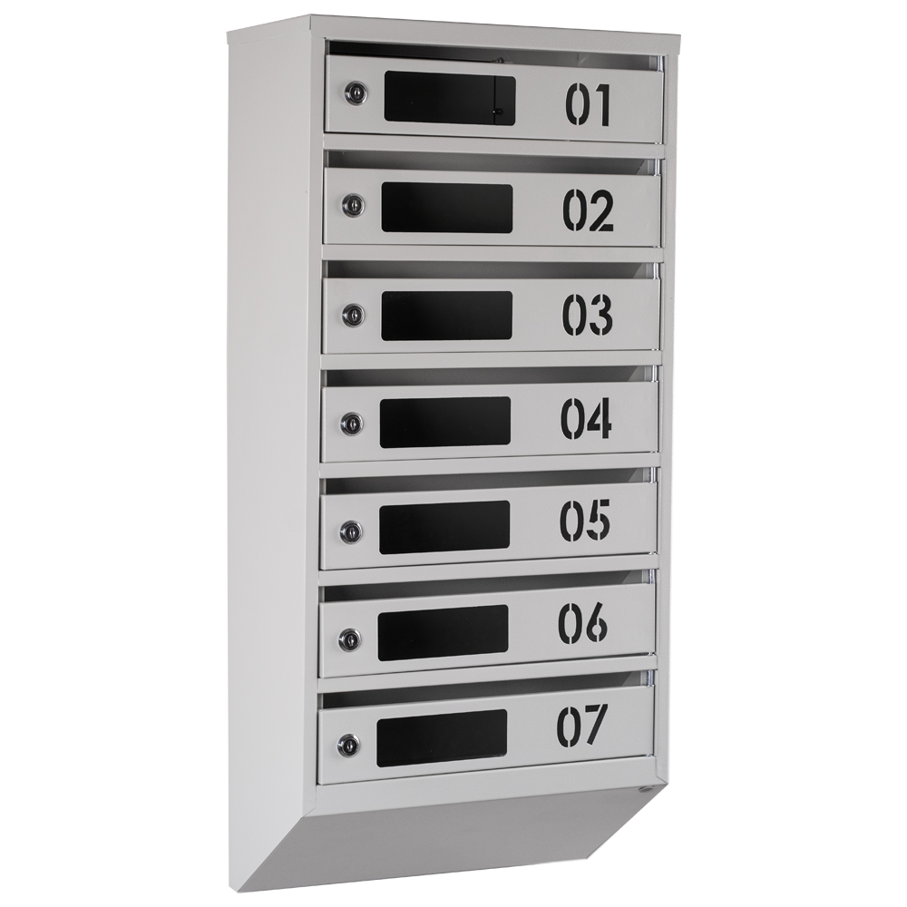 Кожна з семи секцій має достатньо місця для прийому пошти різних розмірів. Замок з двома ключами забезпечує захист ваших листів від несанкціонованого доступу. Стильний дизайн і сучасний вигляд додасть елегантності вашому будинку та зробить процес отримання пошти зручним і безпечним.