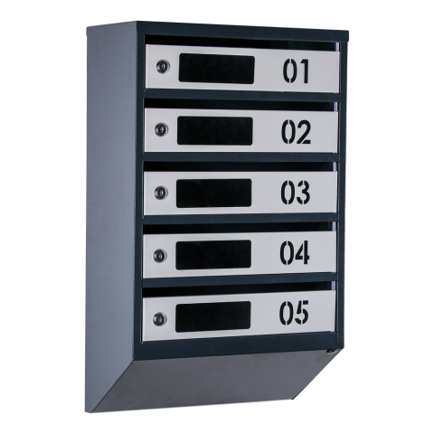 Ефективний та стильний, Поштовий ящик LEVMETAL багатосекціний Е1-03.А розроблений для надійного та організованого прийому листів та іншої кореспонденції в багатоквартирних будинках. З його сірим корпусом та декоративною перфорацією дверцят, цей ящик об'єднує стиль і функціональність, надаючи вашому вхідному простору сучасний вигляд.