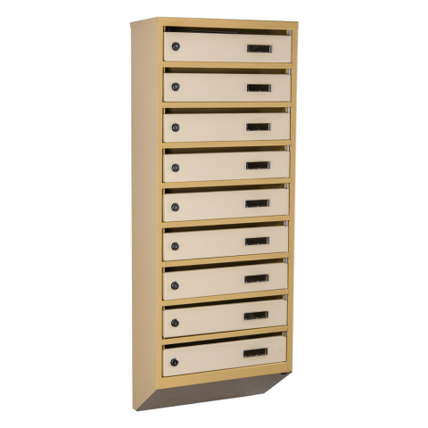LEVMETAL Е2-04.F - це поштовий ящик із 4 косими секціями зі щілинами, спеціально розроблений для використання в багатоквартирних будинках. Він має кожну секцію з вирізаним номером квартири та щілиною для зручності мешканців. Захист від несанкціонованого доступу забезпечується замком з двома ключами. Ящик виготовлений з високоякісної сталі та має нержавіючі дверцята, що забезпечує довгий термін служби. Крім того, він має порошкове фарбування для додаткового захисту від корозії та впливів навколишнього середовища.
