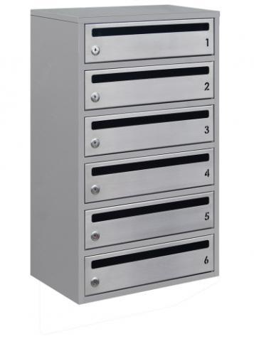 Сірий колір моделі E2-08.F виглядає стильно та гармонійно. Вирізані номери квартир та щілина роблять цей поштовий ящик практичним та естетично вигідним.