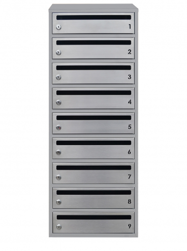 Поштовий ящик LEVMETAL багатосекціний Е2-09.F із 9 секціями у сірому кольорі (RAL 7035) - це стильний та функціональний вибір для багатоквартирних будинків.