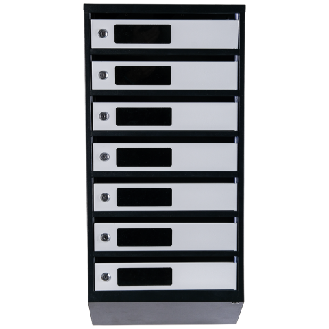 Чорне покриття корпусу (RAL 9005) і сірі дверцята (RAL 7035) створюють стильний та сучасний вигляд. Щілинна конструкція полегшує витягування та розміщення листів та кореспонденції.