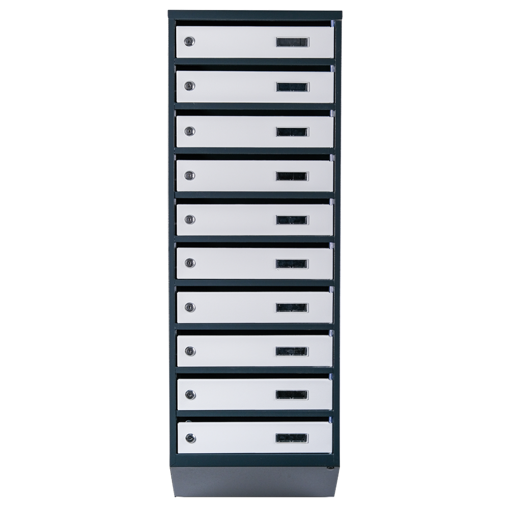 Дизайн в антрацитовому корпусі (RAL 7016) та сірих дверцятах (RAL 7035) створює стильний та сучасний вигляд. Вертикальний прямокутник з щілинним типом дверцят роблять ящик практичним та ефективним для сортування та заборони доступу.