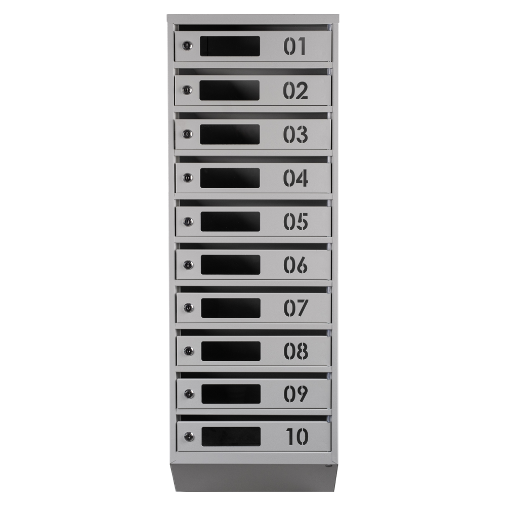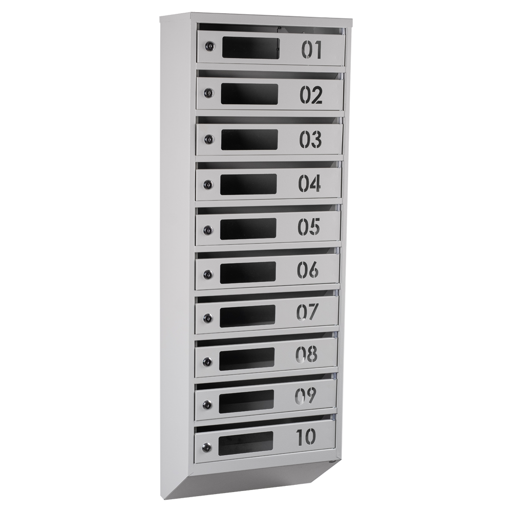Кожна з десяти секцій має достатньо місця для листів та поштових відправлень різних розмірів. Вбудований замок з двома ключами забезпечує надійну захисту ваших листів від несанкціонованого доступу. Завдяки своєму сучасному дизайну і стійкому до корозії покриттю, цей поштовий ящик буде ідеальним доповненням до будь-якого будинку, забезпечуючи зручність та безпеку в обробці пошти для всіх мешканців.