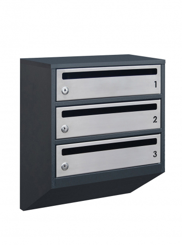 Поштовий ящик LEVMETAL багатосекціний Е1-03.F на 3 квартири Чорно-сірий 475x390x200