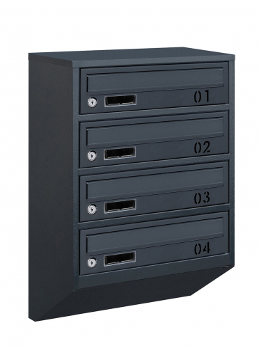 Поштовий ящик LEVMETAL багатосекціний Е1-04.B на 4 квартири Антрацит 585x390x200