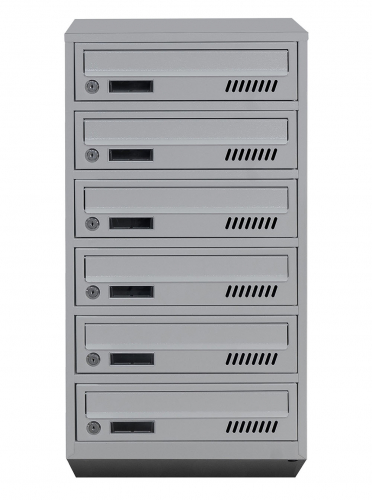 Поштовий ящик LEVMETAL багатосекціний Е1-06.A на 6 секцій в сірих відтінках є ідеальним виробом для ефективного та зручного отримання пошти в багатоквартирних будинках. З декоративною перфорацією та віконцем дверцят відзначається стильним та функціональним дизайном.