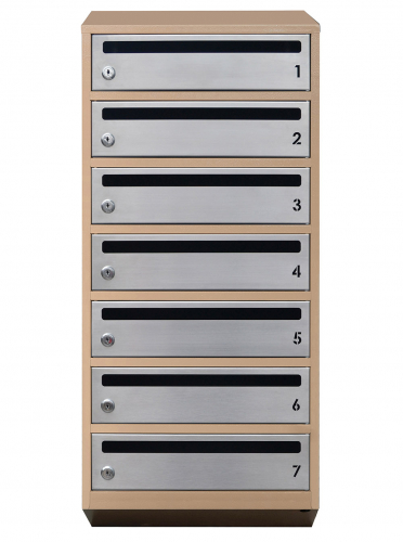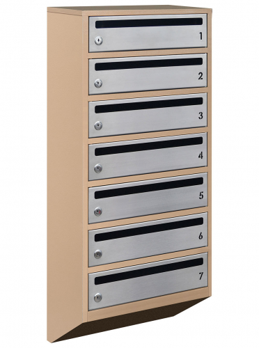 Косі секції зі щілинами забезпечують зручне вилучення та вставлення листів. Вирізані номери квартир та щілина у дверцятах дозволяють мешканцям легко отримувати свою кореспонденцію. Захист від несанкціонованого доступу гарантується замком із двома ключами.